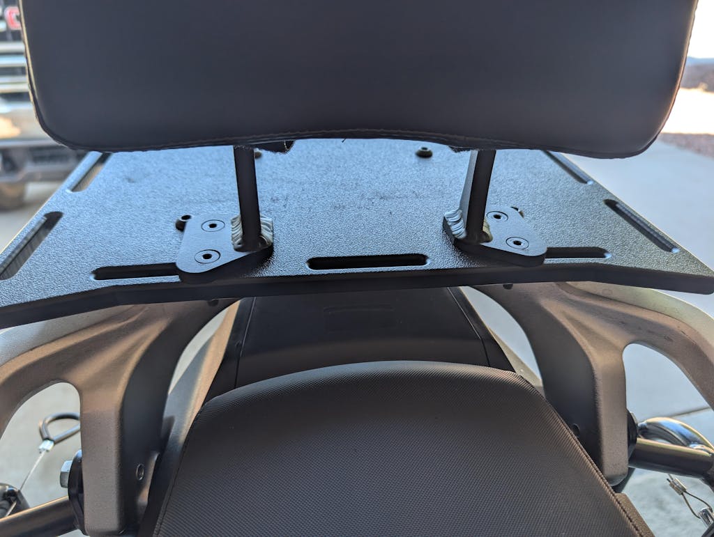 it must be used with either (A) our Backrest Mount Plates or (B) one of our Luggage Racks.