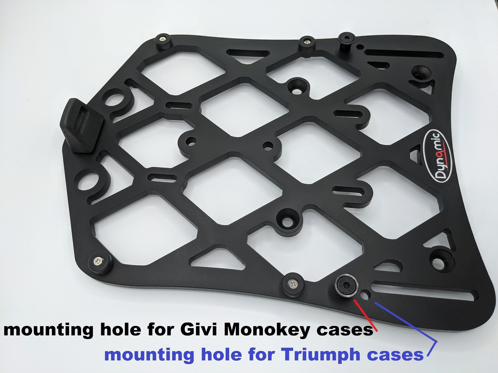 heavy duty rack designed as a topcase mount for the Givi/Kappa Monolock, Monokey and Triumph Expedition cases(both mounting patterns on rack).